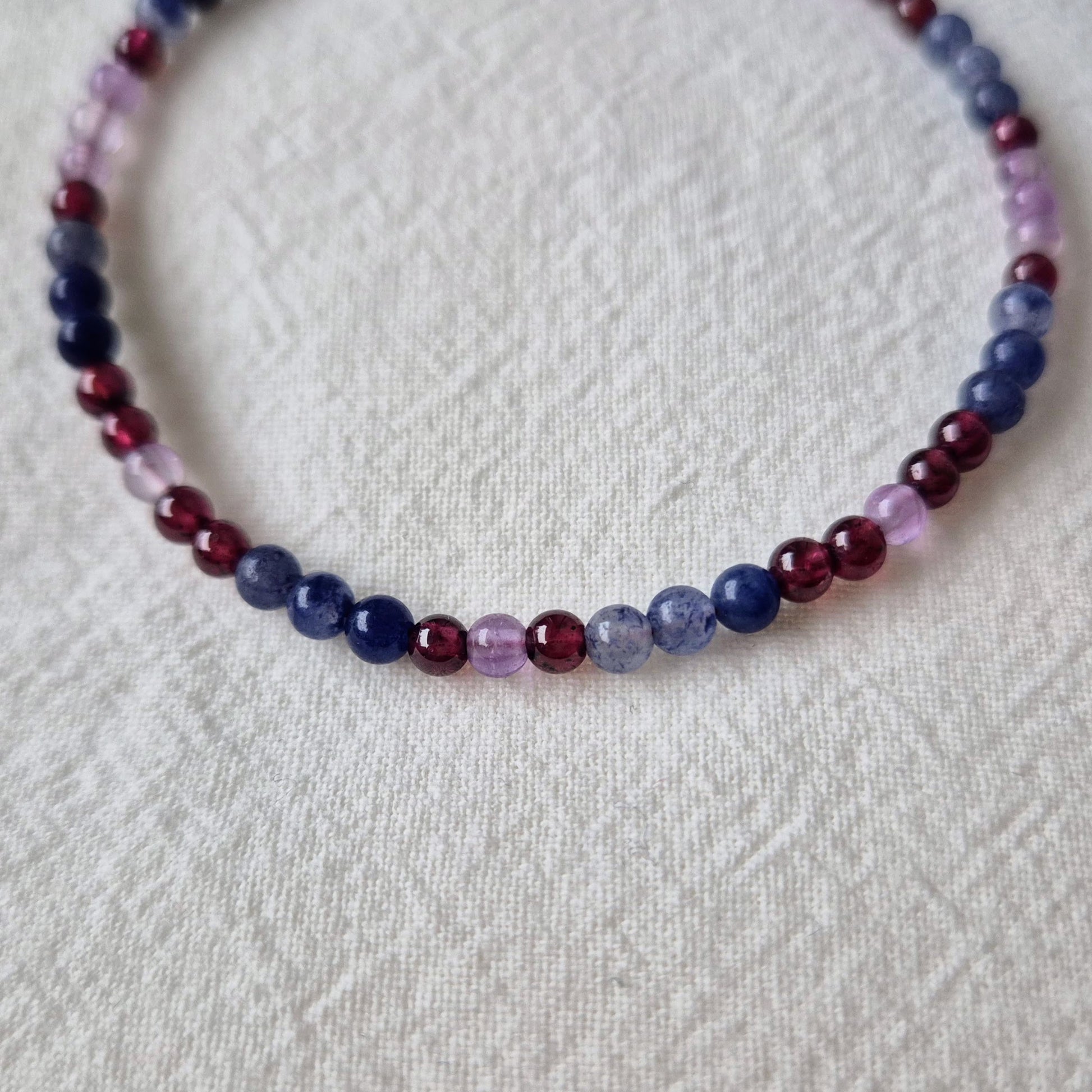 Wiśniowe granaty, lawendowe ametysty i niebieskie awenturyny w klasycznych kształtach. Połączenie zarówno soczyste jak i eleganckie.